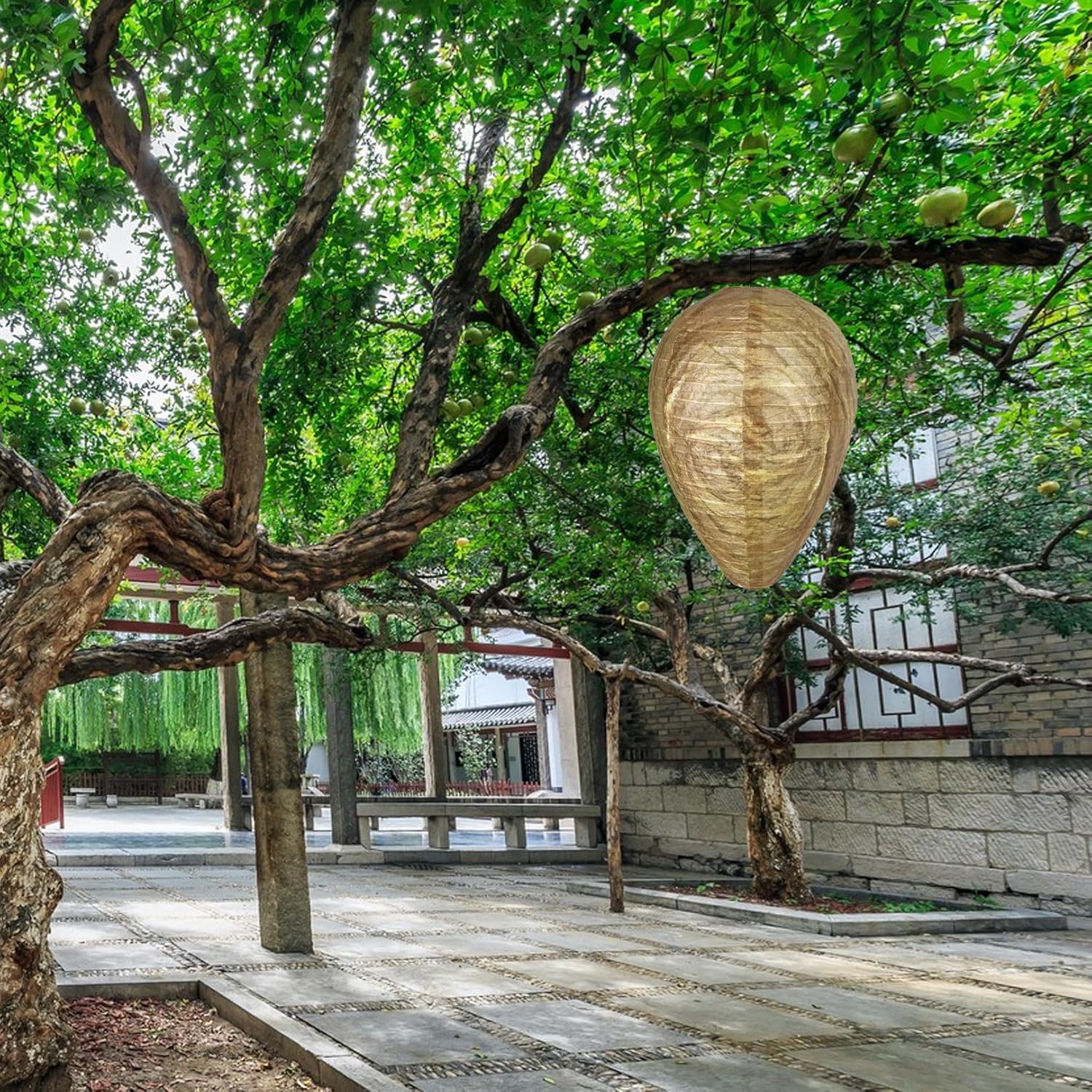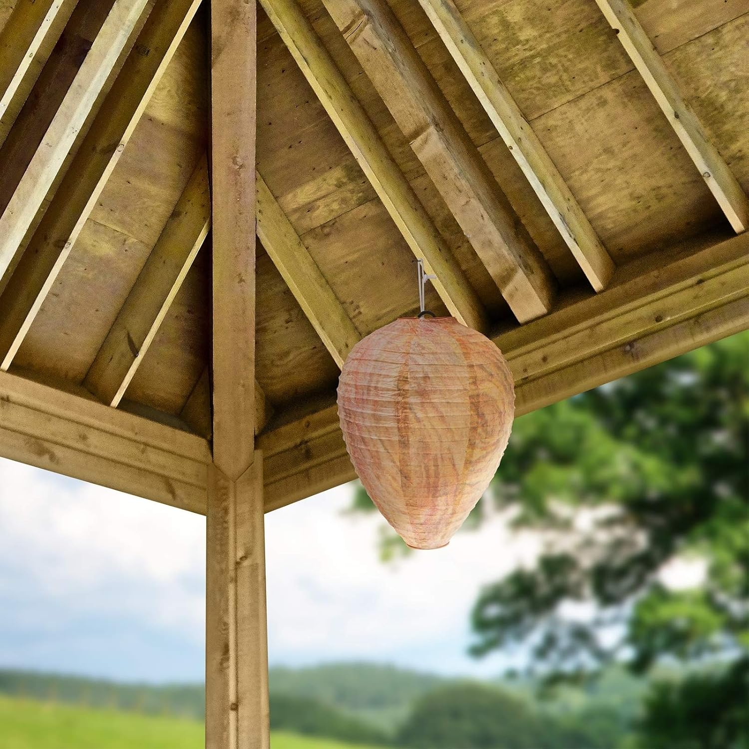 Stilfuld hvepseafvisende lampe, hængende, til et hvepsefrit miljø, med stemningsfuld havebelysning.