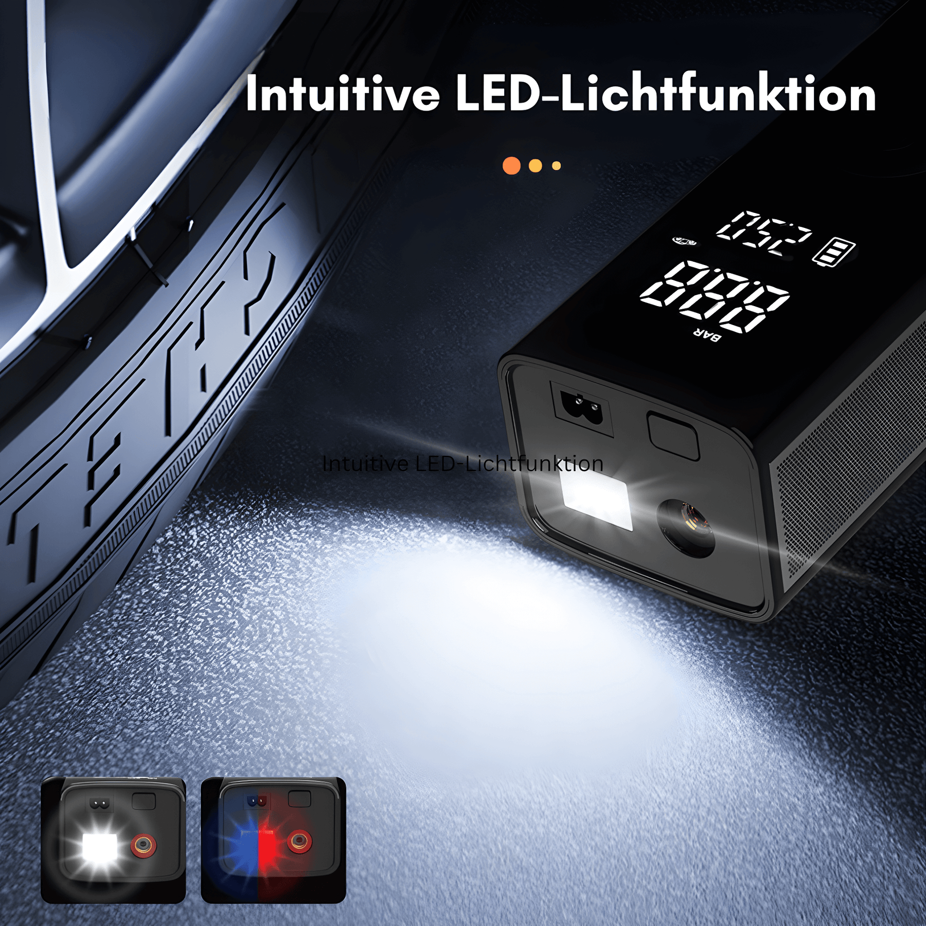 Uanset om det er cykel, motorcykel, bil eller bold – vores luftpumpe er velegnet til en lang række anvendelser. Med de forskellige medfølgende ventiladaptere kan du bruge pumpen til næsten alle almindelige ventiltyper. Den integrerede LED-belysning sikrer, at du kan arbejde problemfrit selv i mørke. Og takket være powerbank-funktionen kan du oplade dine mobile enheder på farten.
