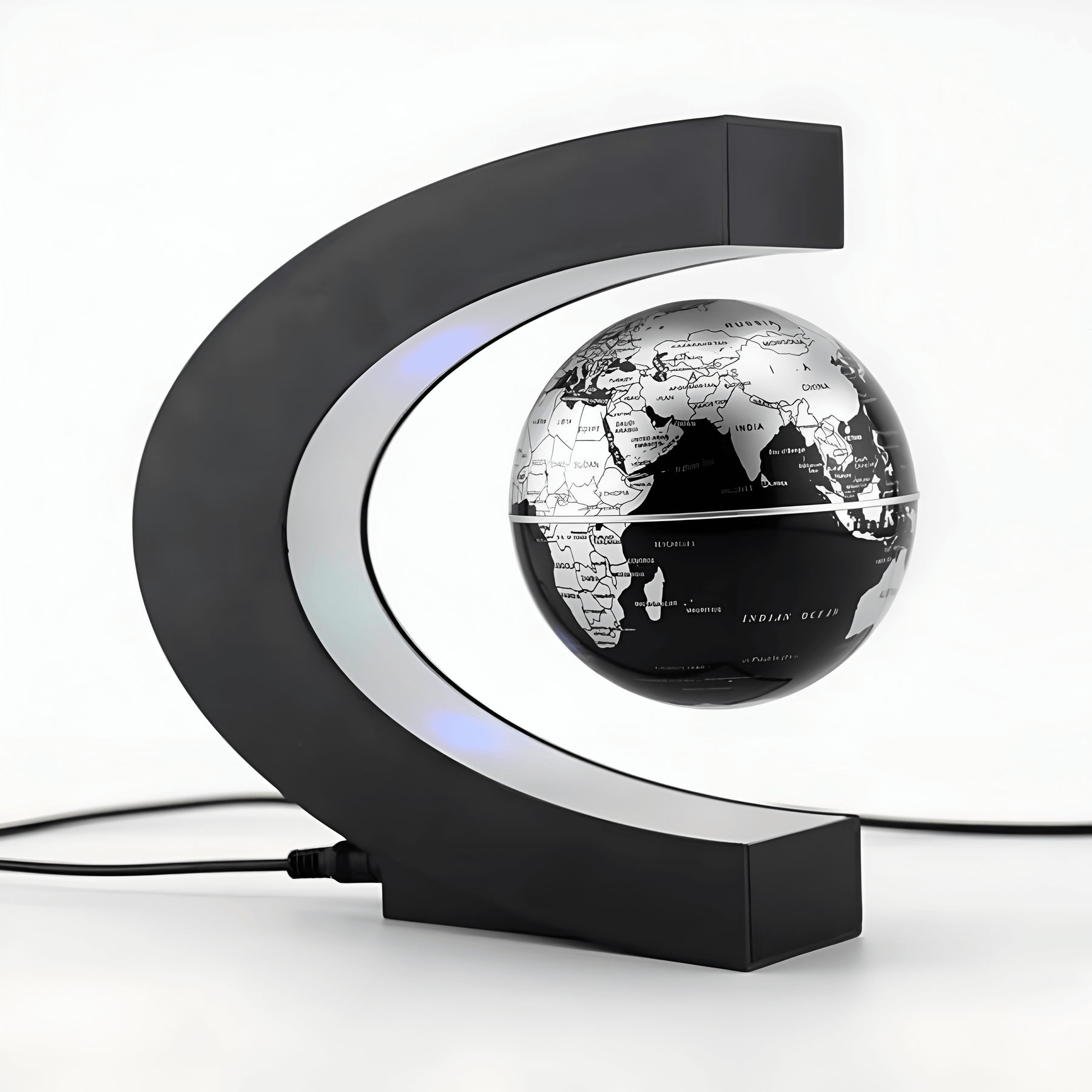 • Magnetisk svævning: Globen svæver frit i rummet.